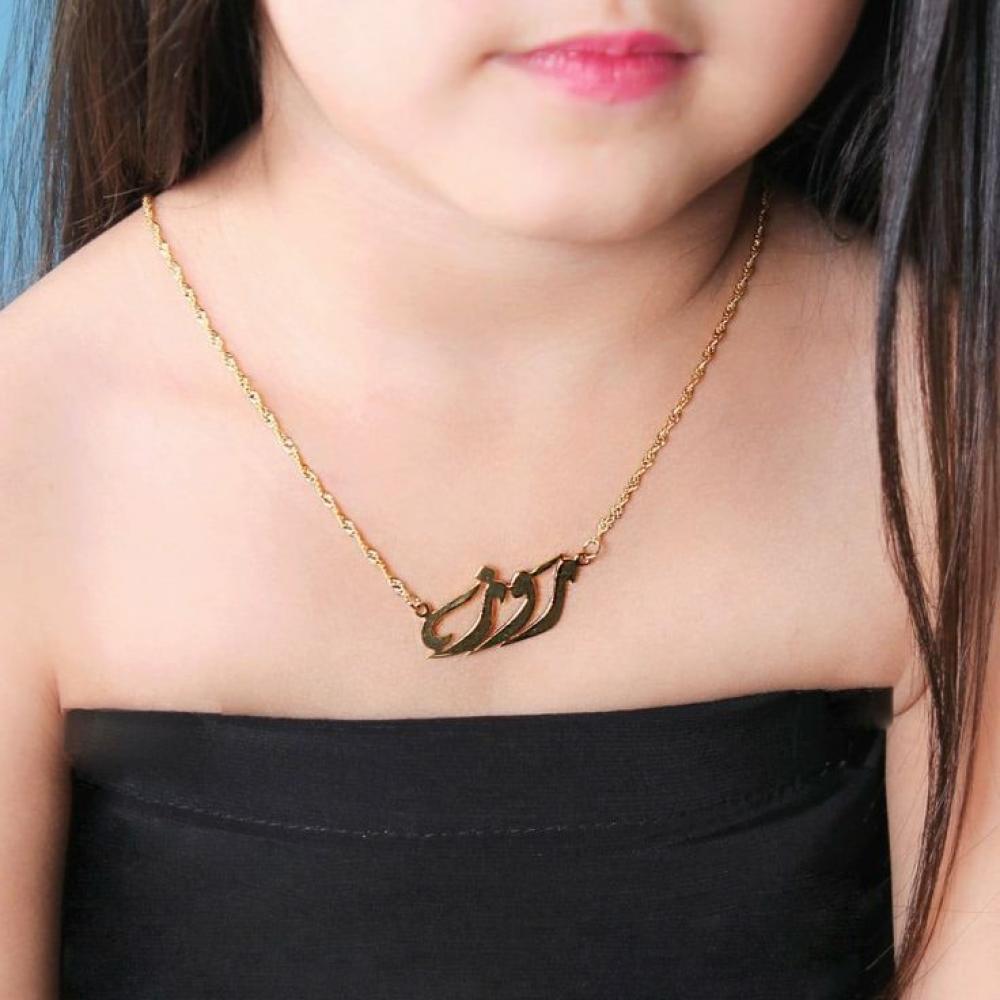 قلادة اسم ذهبية عيار 21 قيراط مطلي بالذهب، بتصميم عربي كلاسيكي أنيق. تتميز بحرفية عالية وجودة لا تضاهى، مما يجعلها قطعة فريدة من نوعها. يمكنك تخصيص القلادة باختيار اسمك أو اسم شخص عزيز عليك، واختيار نوع الخط وحجم القلادة الذي يناسبك. هدية مثالية في المناسبات الخاصة، أو لمكافأة نفسك بقطعة مجوهرات مميزة.