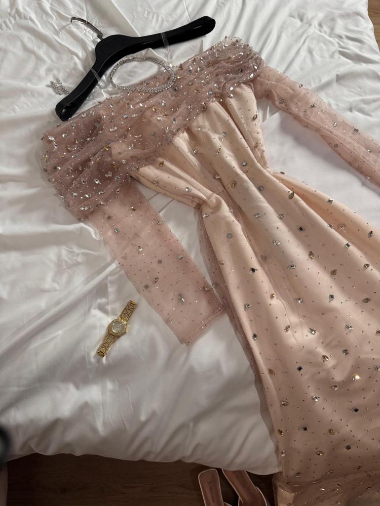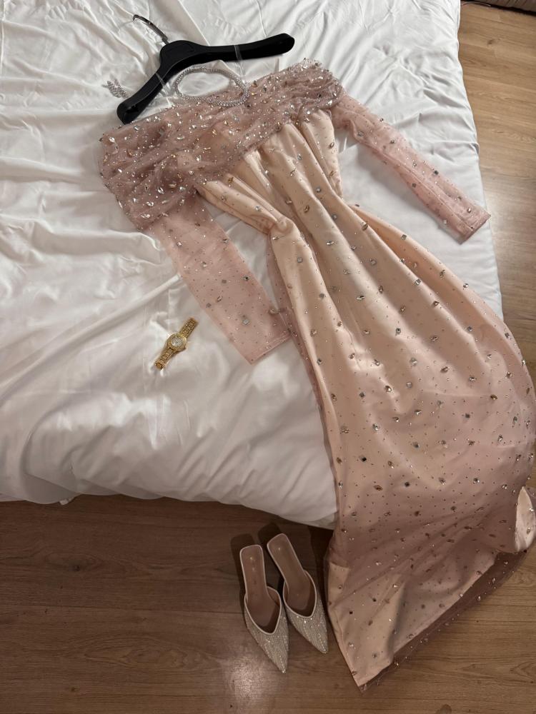 القماش : الخامه تفته استرتش راااقي لمعه + تل مطرز فصوص كرستال + كرستال راااقي لمعه.