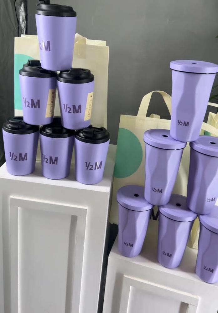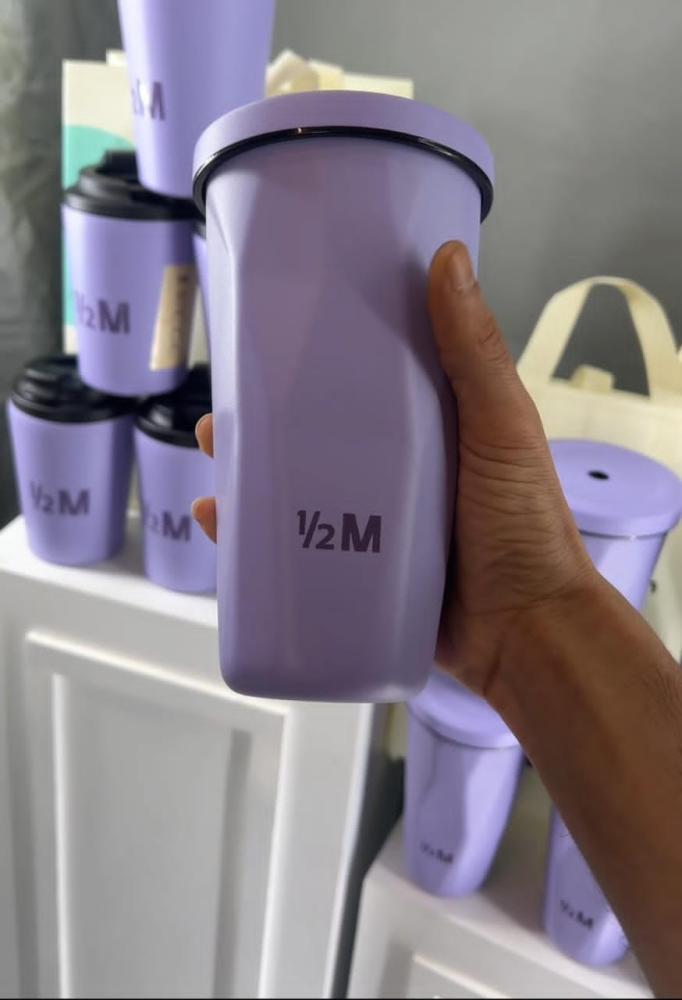 أضف لمسة من الأناقة لمشروباتك اليومية مع كوب هاف مليون الأصلي بلونه الموف الجذاب.