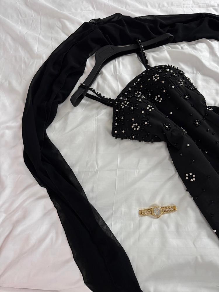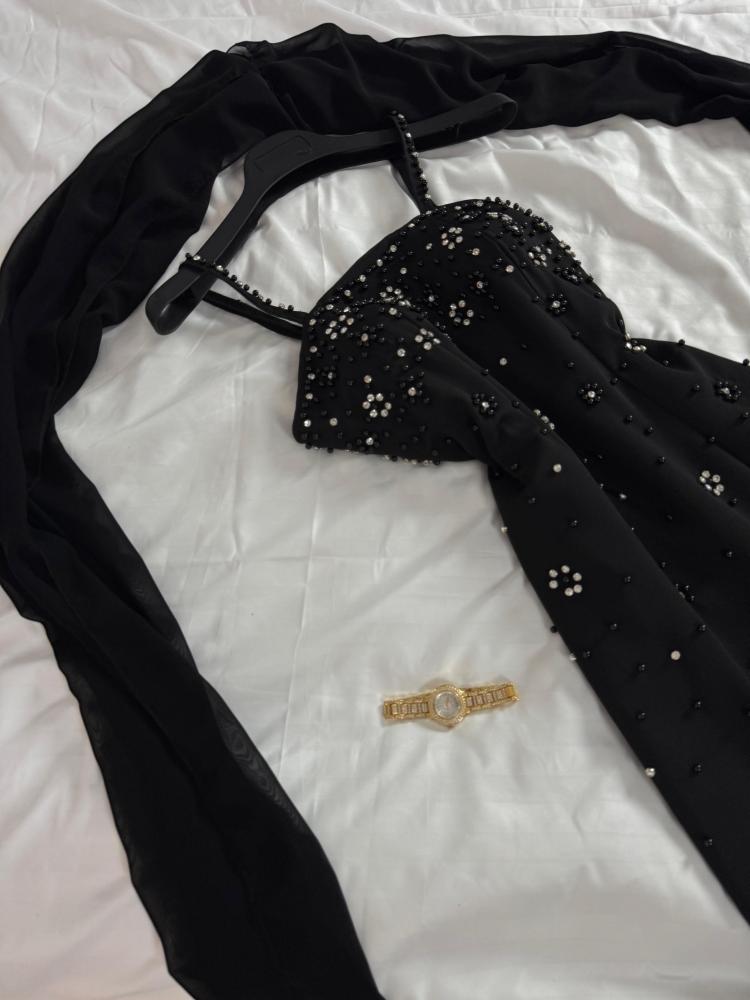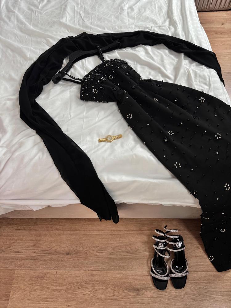 القماش : الخامه باربي راااقي الاصلي + تطريز شك يدوي بالقماش نفسه + لولو كبس رااقي + شال شيفون ناعم.