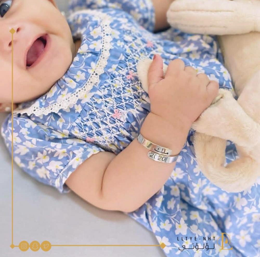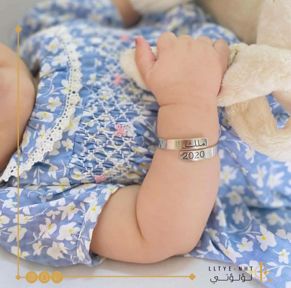 * أساور اسم الطفل: تحمل أسماء الأطفال بشكل أنيق ومميز، وهي هدية شخصية جداً.
