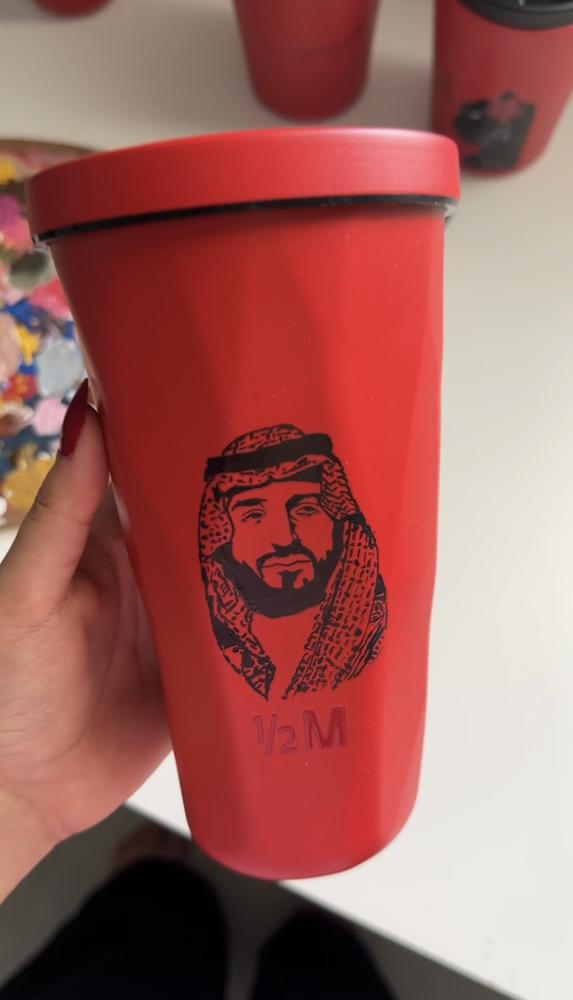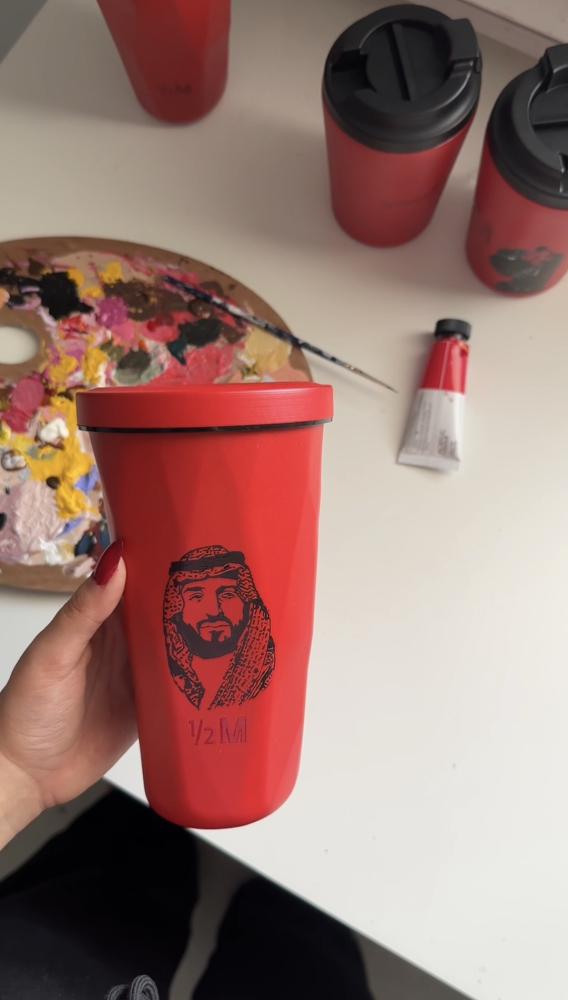 استمتع بمشروبك المفضل مع كوب هاف مليون الأحمر المميز، المزخرف برسمة أنيقة لولي العهد محمد بن سلمان.مصنوع بجودة عالية ليمنحك تجربة استخدام يومية عملية، ويجمع بين الأناقة والهوية الوطنية.