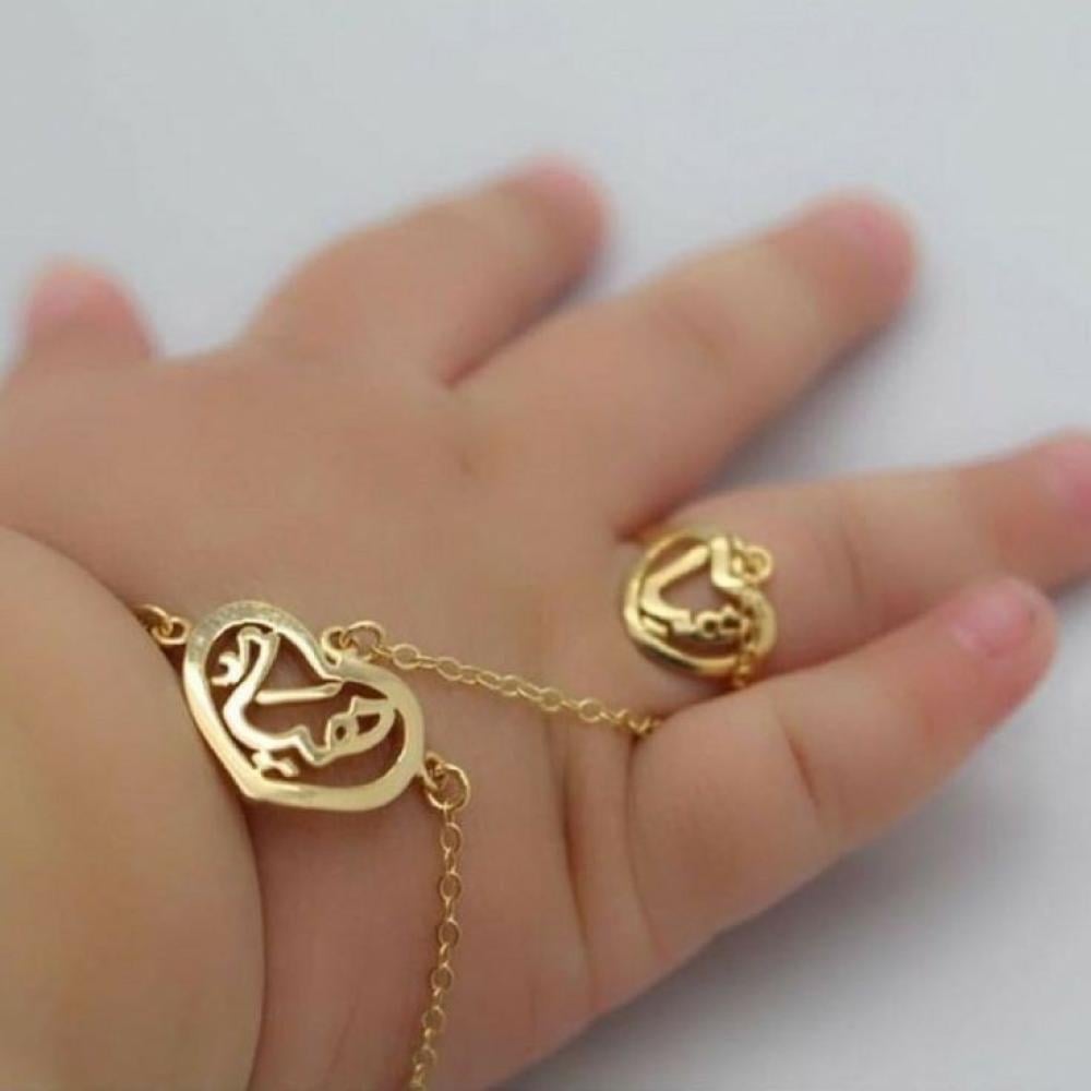 اسوارة مع خاتم اسم مخصص من الطلاء الذهب عيار 21 قيراط