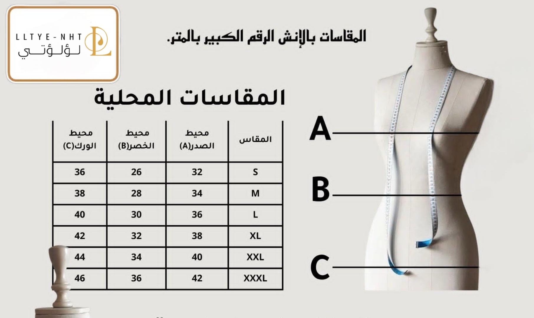 ( يرجى عدم اخذ القياس بالمتر الصيني)