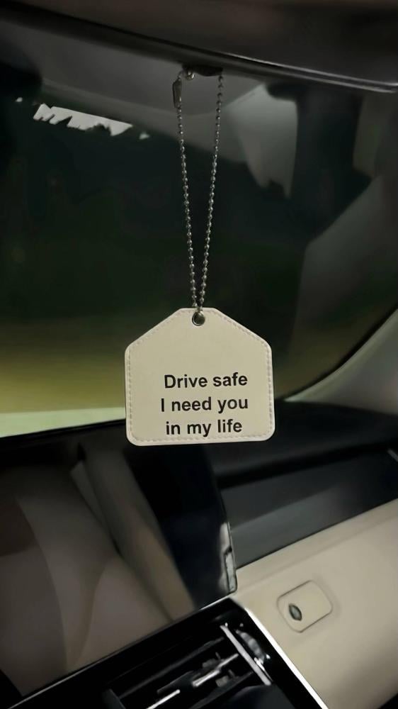 تعليقة جلديه أنيقة لسيارتك، منقوش عليها عباراتك الخاصة.