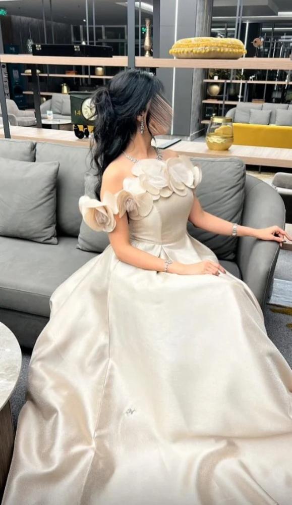 القماش : الخامه ميكادو روسي راااقي لمعه + صدر مورد ميكادو معا تل.